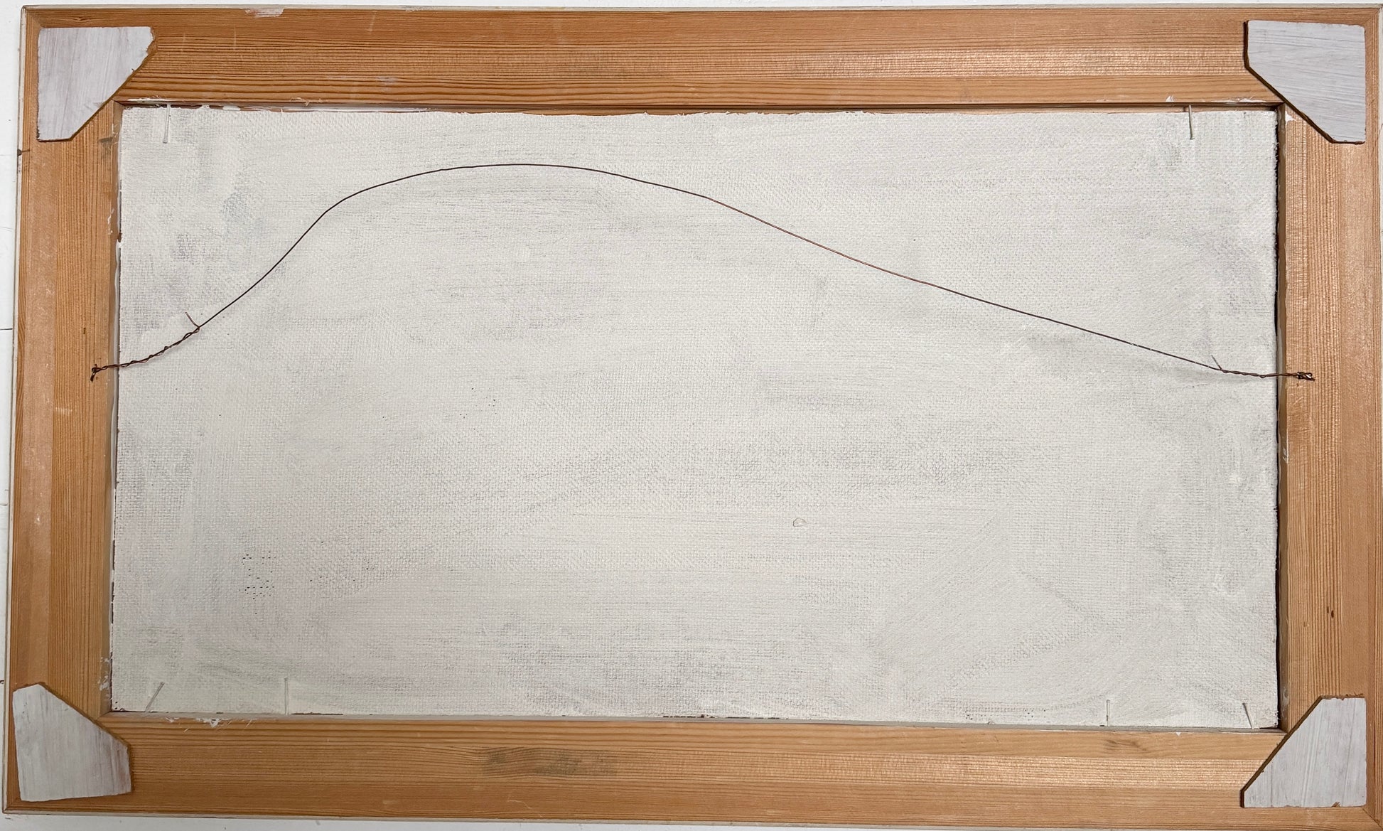 Executed with confident, expressive strokes, the painting balances abstraction and landscape, suggesting a place that is at once recognisable and imagined. The restrained yet dynamic palette enhances its sculptural quality, while the elongated format reinforces the sense of vastness and horizon.